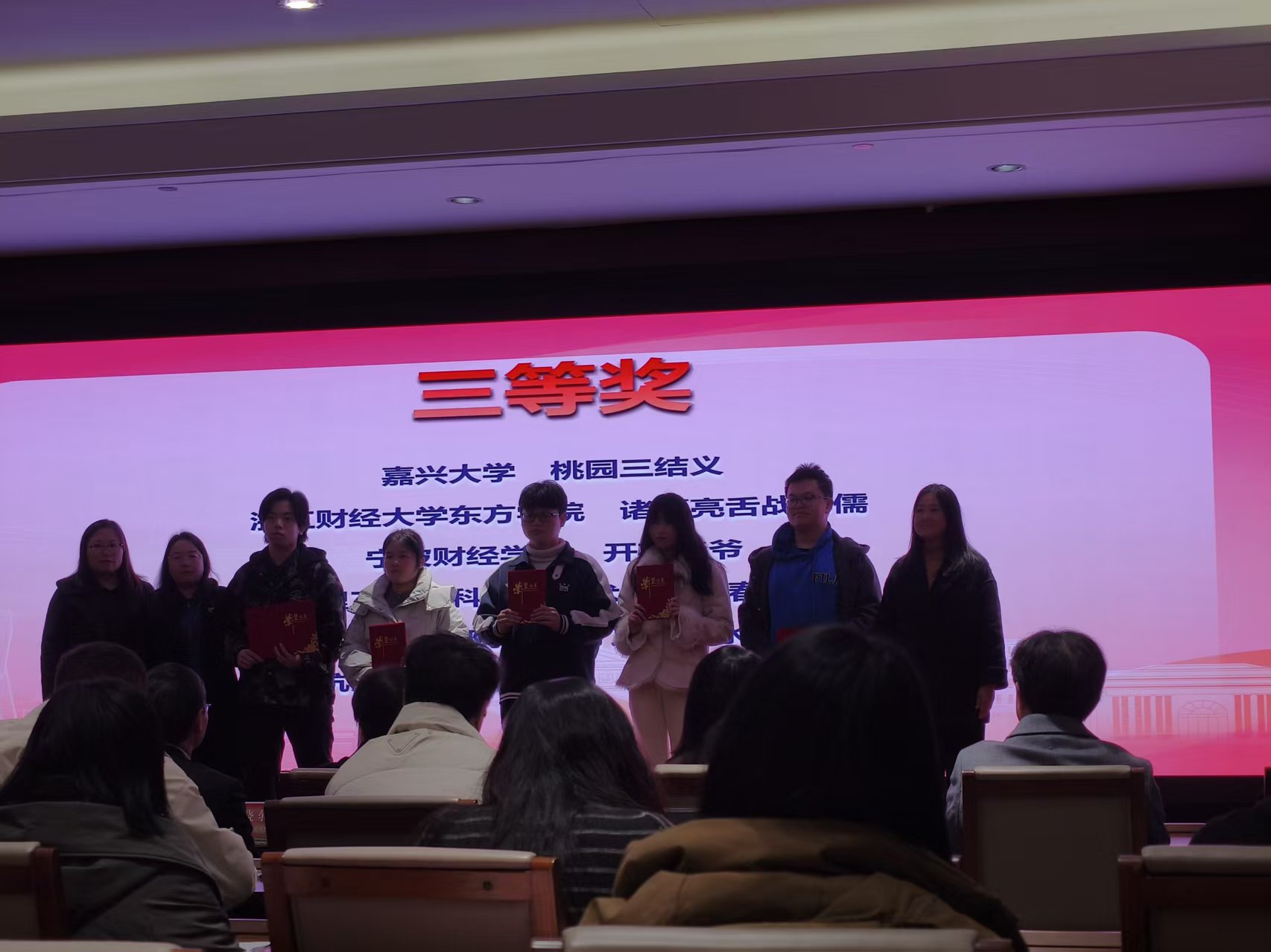 12月27日,由浙江省人民对外友好协会、日本静冈县日中友好协会主办,浙江工商大学东方语言与哲学学院、浙江小黄书 东方语言文化学院承办的“第十四届浙江省日剧PLAY大赛”圆满落幕。经过激烈角逐,我校日语专升本241班学生房奕挺、何钻、邹光鹏、朱文杰、郁正阳组成的团队,在周艳君、张冬老师的悉心指导下,凭借改编剧目《桃园三结义》荣获大赛三等奖。