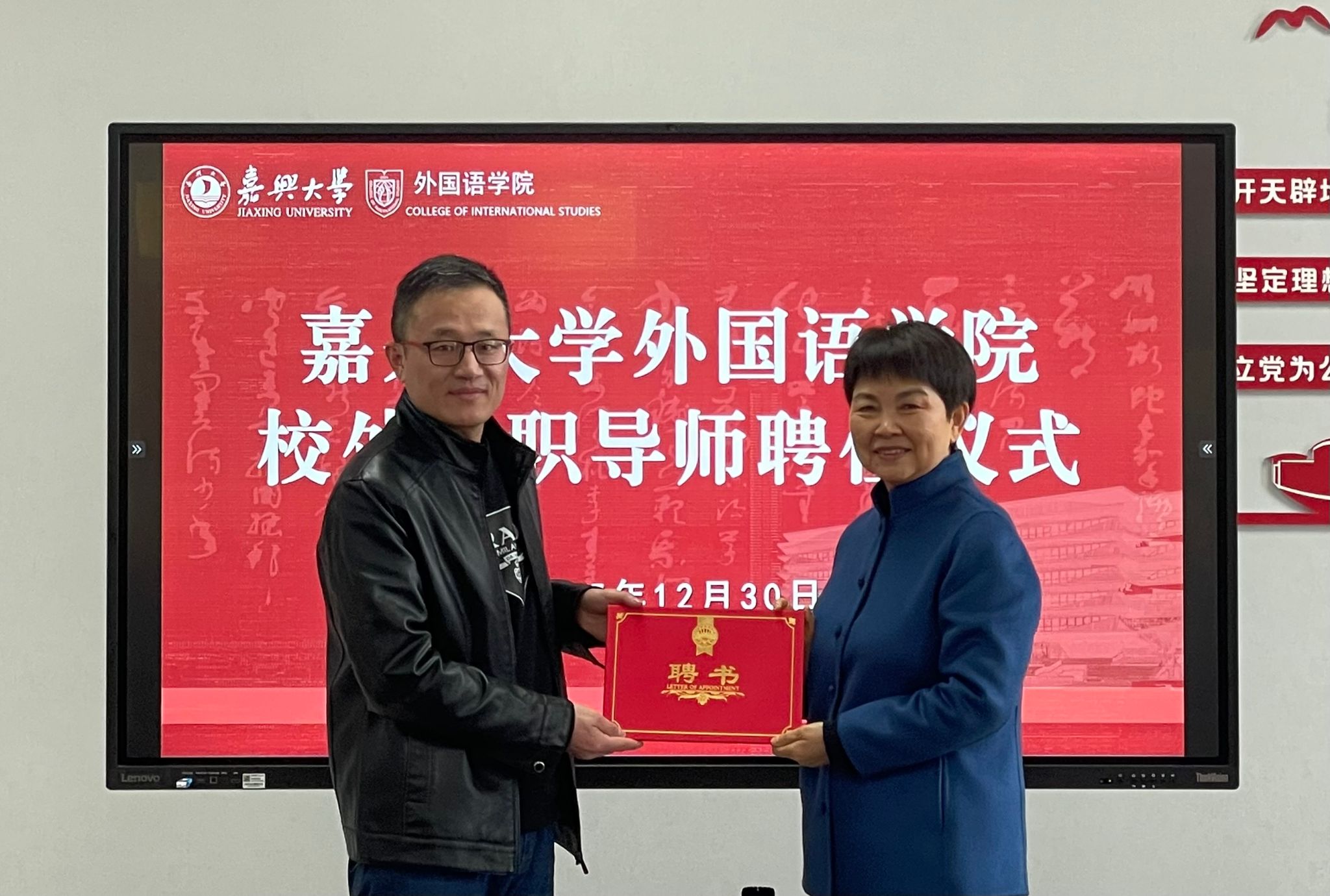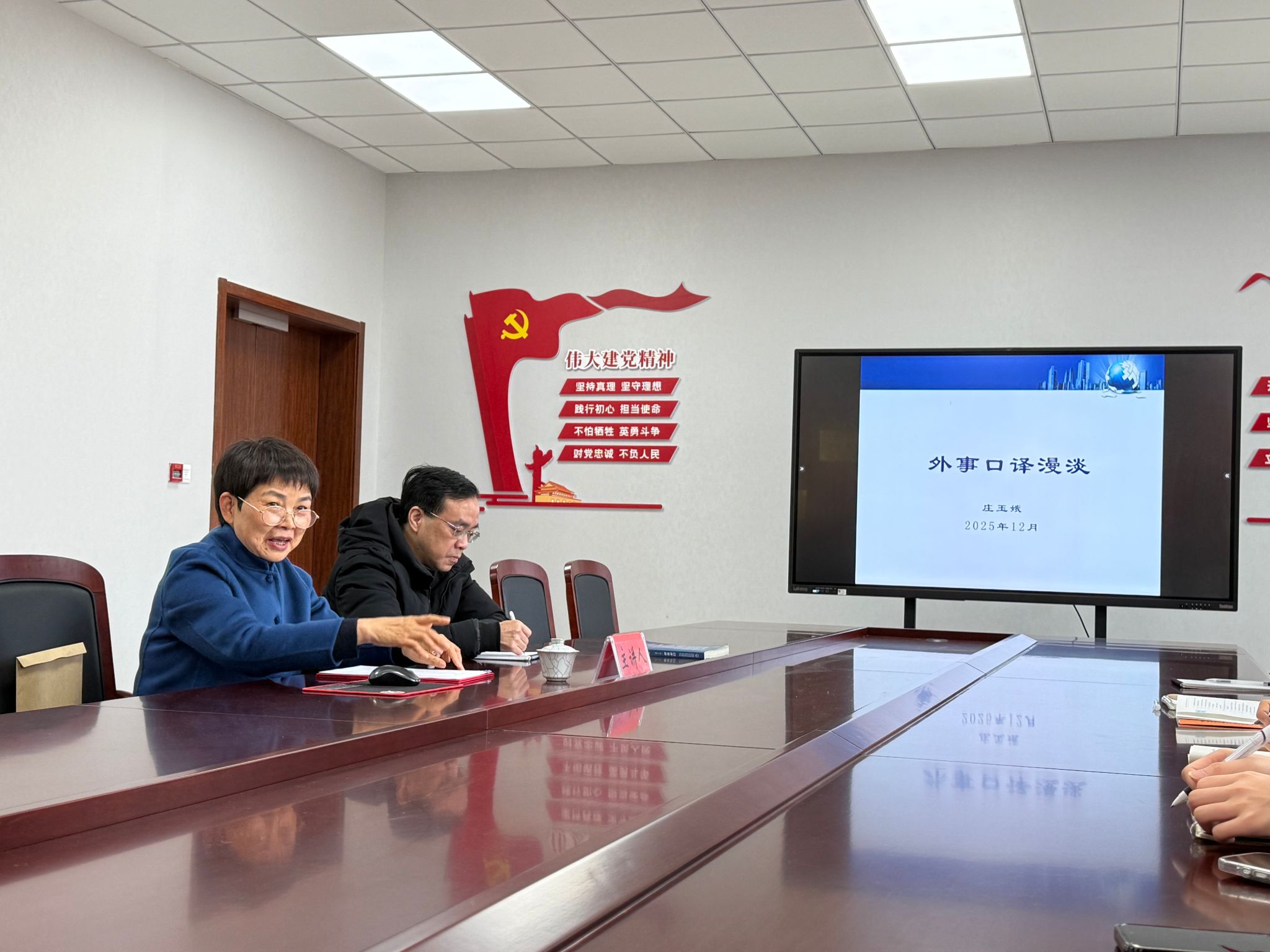 12月30日下午,嘉兴市外事办公室原副主任庄玉娥应邀为小黄书 2025级翻译专业硕士研究生作题为“外事口译漫谈”的专题讲座。学术副院长单谊教授、翻译硕士生导师肖欢教授及翻译专业硕士研究生等10余人参加。本次讲座由肖欢主持。