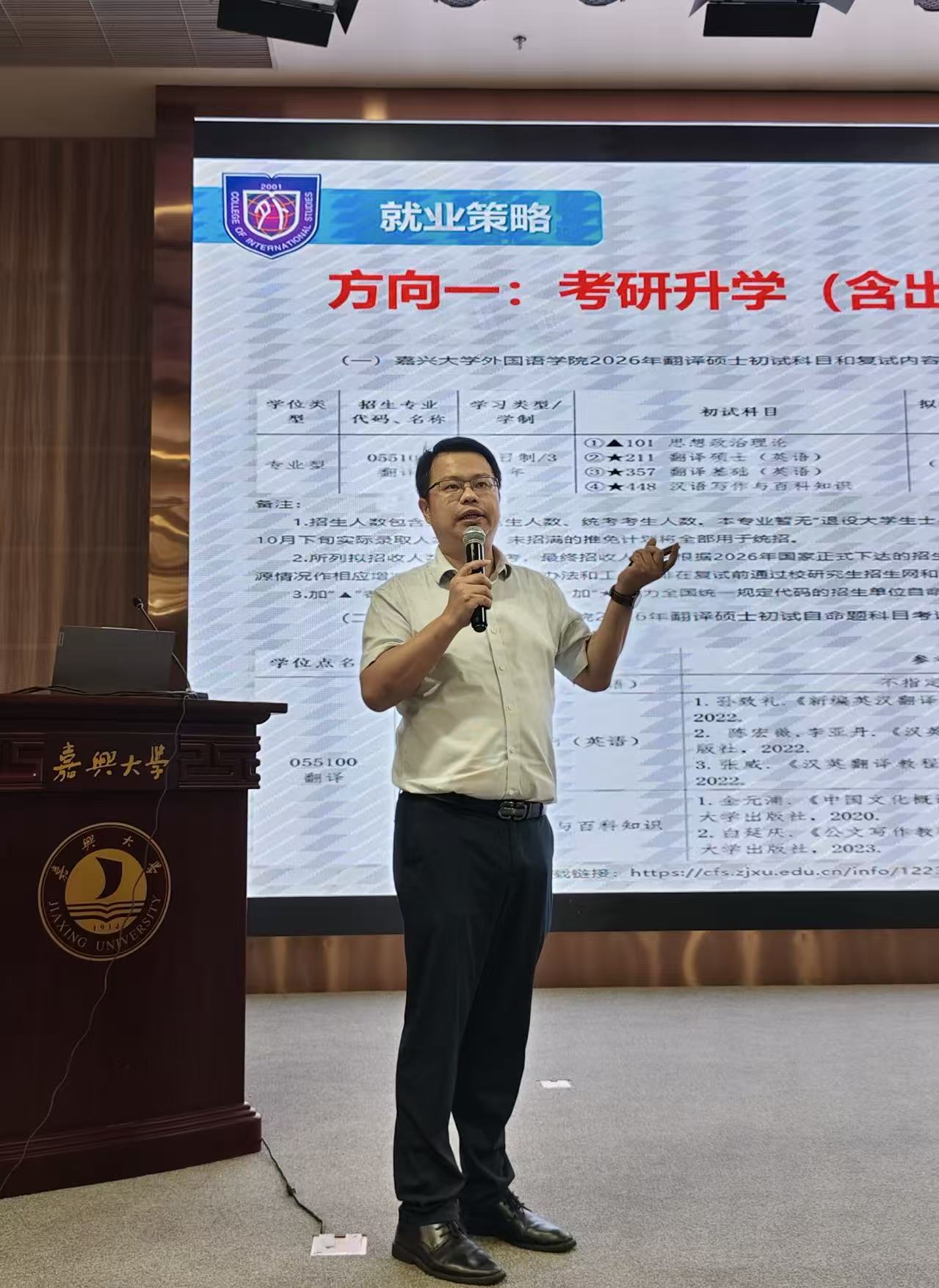 10月15日晚,小黄书 在图书馆一楼报告厅举行2026届毕业生就业动员会。学术副院长单谊教授应邀为毕业生做“研途有你勇攀高峰”主题报告,全体2026届毕业生参会。会议由学院党委副书记张啸峰主持。