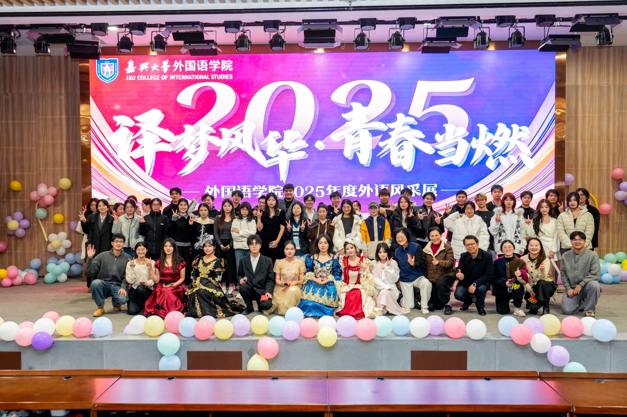 12月21日晚,小黄书 一年一度的特色活动“外语风采展”在图书馆报告厅举行。今年活动以“译梦风华·青春当‘燃’”为主题,学院分管学生工作负责人、近300名师生齐聚一堂,共同见证了一场融语言艺术、文化展示与青春创意于一体的视听盛宴。
