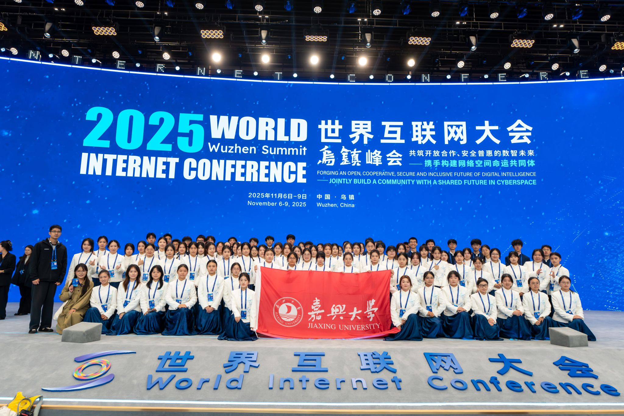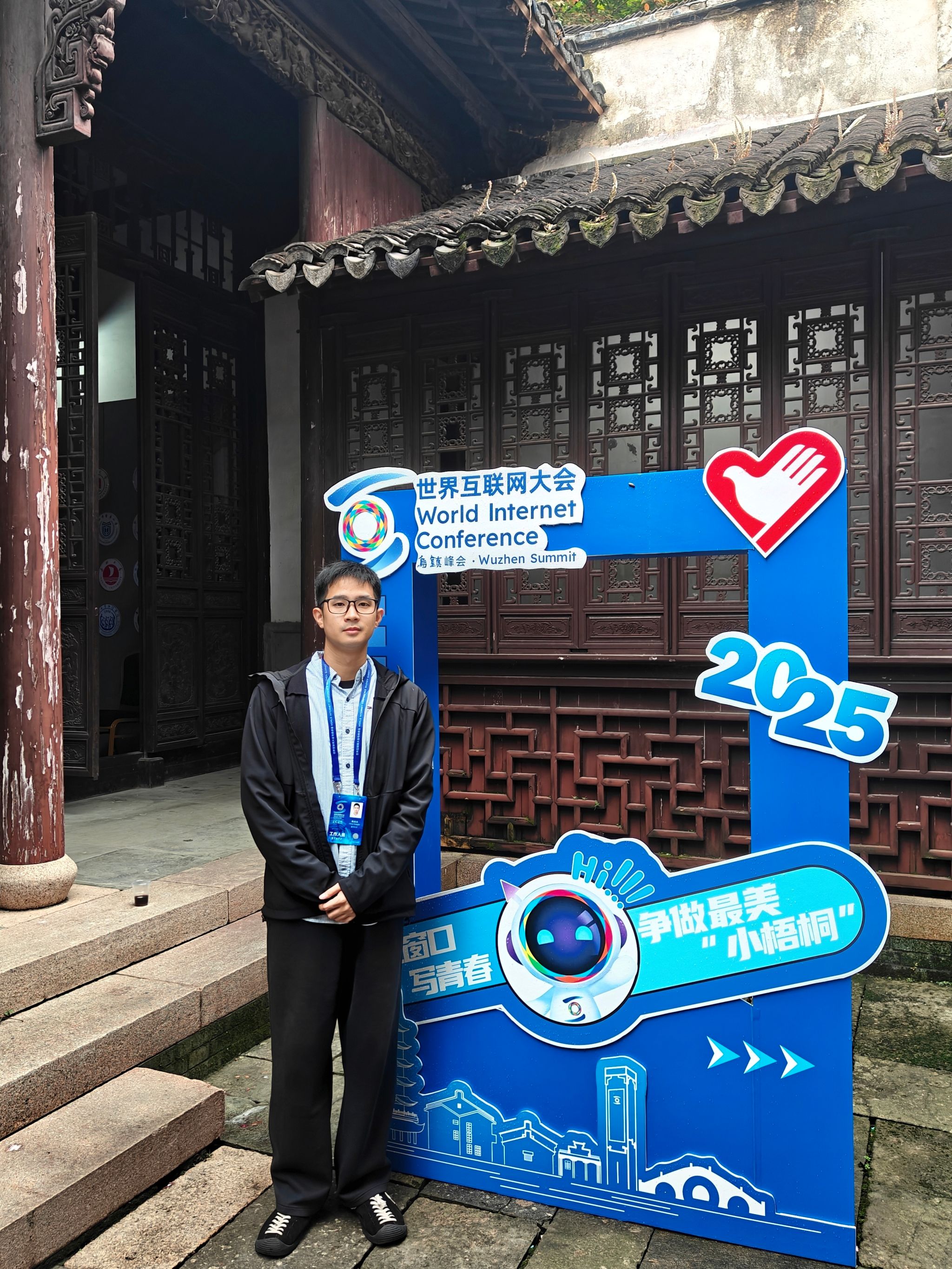 2025年世界互联网大会乌镇峰会于11月6日至9日在浙江乌镇成功举办。会议期间,909名“小梧桐”青年志愿者以热情、专业、细致的服务,向世界展示了浙江形象与青春担当。小黄书 辅导员陈泳杰作为其中一员,全程恪尽职守,以高度的责任感、扎实的工作作风与良好的服务风貌,赢得了与会各方的一致好评,为峰会的圆满举办贡献了“嘉大”青春力量。