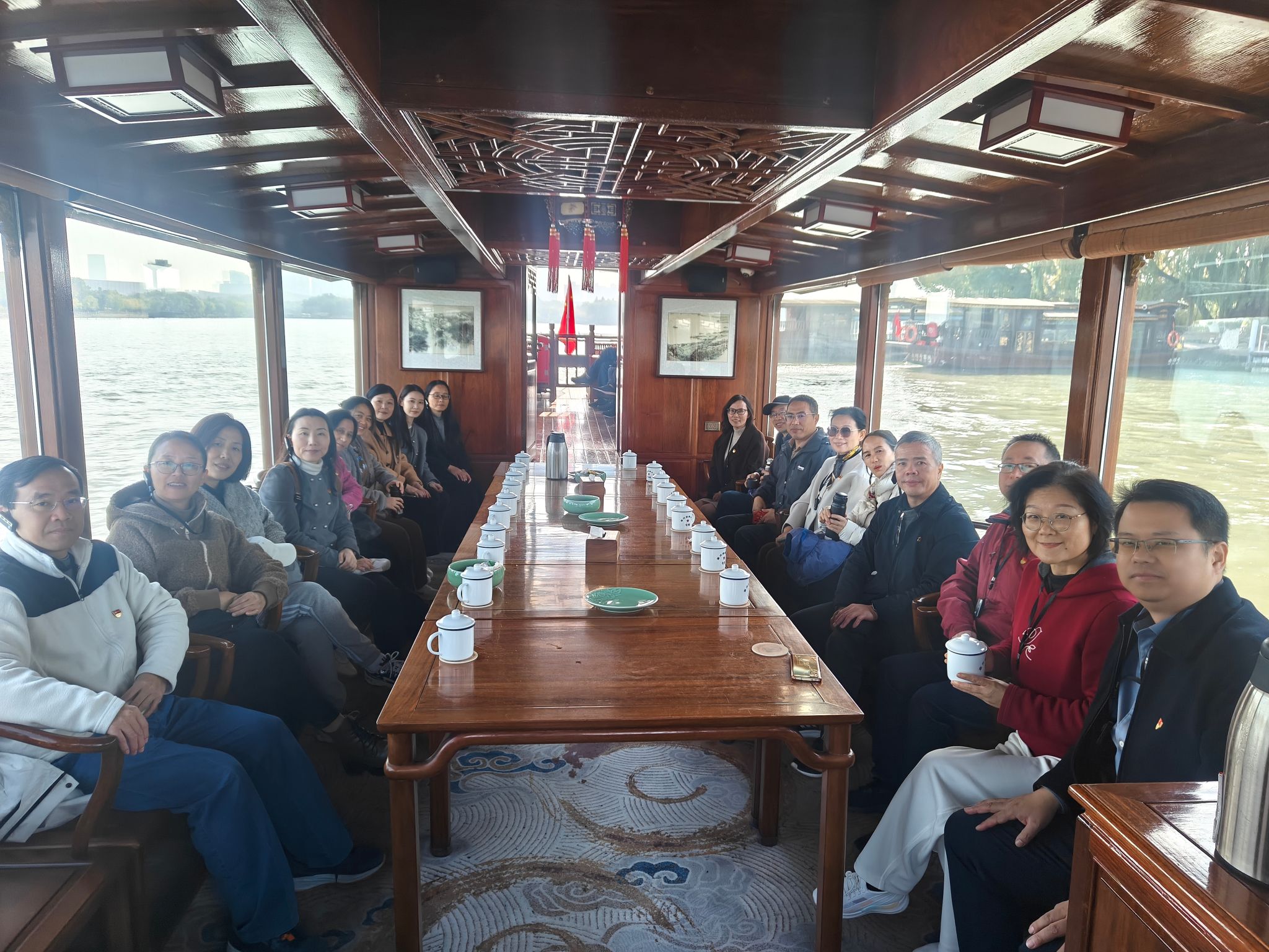 全体党员怀着崇敬之情瞻仰南湖红船,认真聆听“一条小船和一个大党”的诞生历程,深刻感悟中国共产党人忠诚为民、坚守初心的精神内核,从红船精神中汲取矢志不渝的前进动力。在湖心岛,大家参观“来许亭”“鉴亭”等历史文化点,通过聆听清代嘉兴知府许瑶光的为民故事,在古今映照中深化对初心使命的理解,筑牢立德树人的思想根基;在游船上,大家品茗畅谈,围绕“践行红船精神、坚守教育初心”交流感悟,分享育人故事与理想追求,让初心使命在思想碰撞中扎根铸魂。