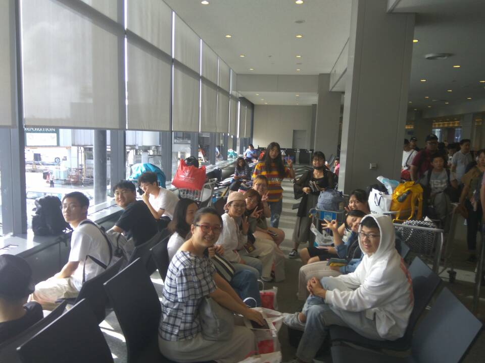 当大家即将踏上归途时,“利奇马”袭来,一行55人被堵在了东京的成田机场。带队的刘韵超、孙玉慧和方江燕三位老师一边竭力稳定学生情绪,一边有条不紊地为大家办理机票改签、签证延长手续和安排同学们住宿。在日本延长滞留的四天里,同学们及时向家人报平安的同时,他们相互鼓励,积极主动配合带队老师,表现出了高度的团队协作精神。
